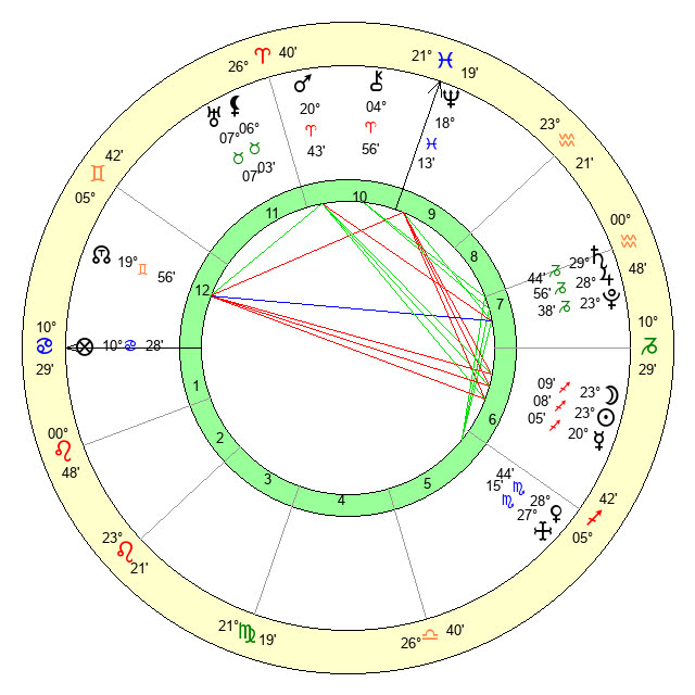 Η παρουσία όλων αυτών των πλανητών του Ήλιου / Σελήνης και Ερμή στο ζώδιο του Τοξότη εμπεριεχόμενους μέσα στον 6ο οίκο κάνουν καλές όψεις με κάποιους πλανήτες, ενώ με κάποιους άλλους δημιουργούν προβλήματα.
